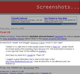 Congrats Seymour Cakes... you made jeffooi.com today! Proud of ya man :)Yeah peak oil is important... please do read up a bit on it here.